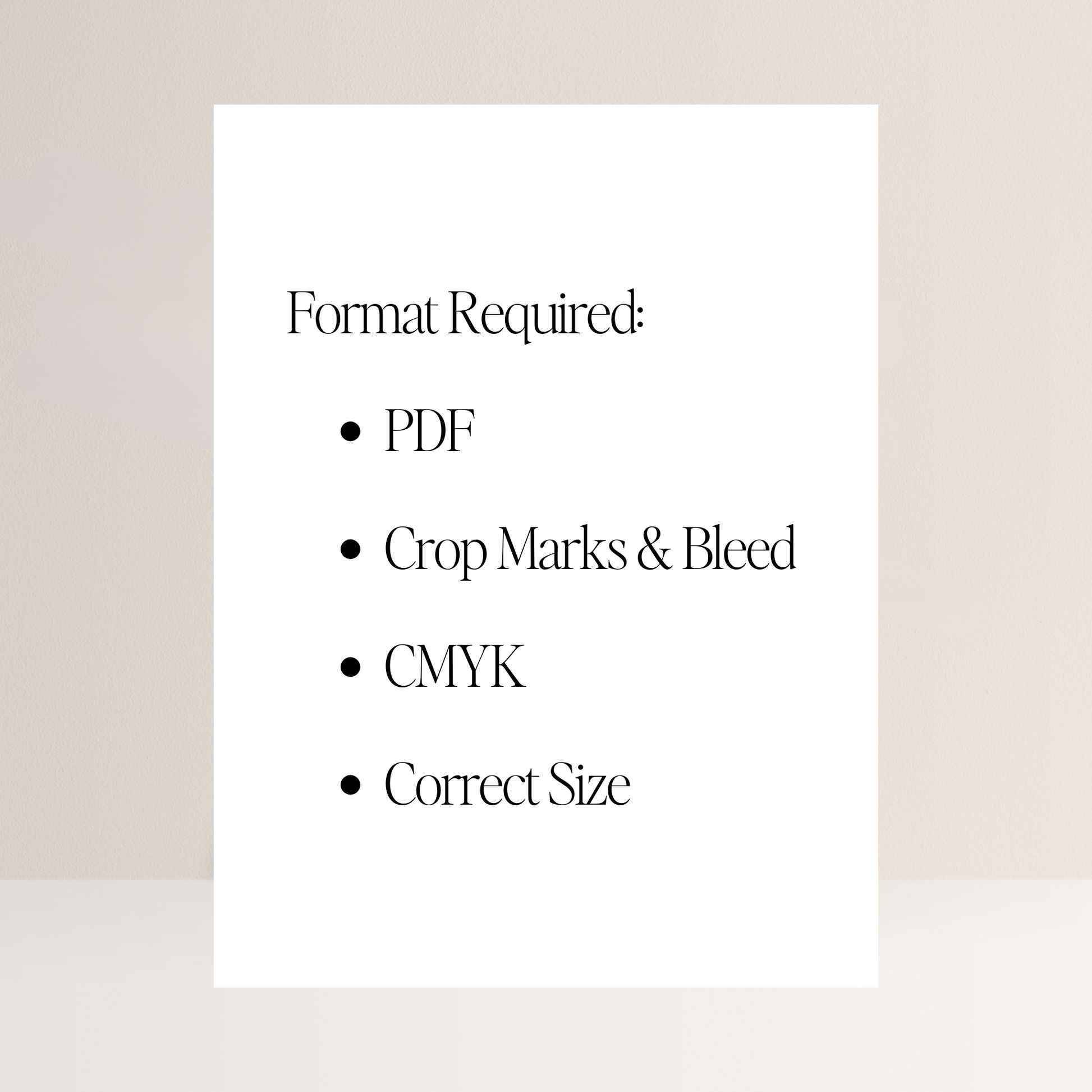 Please note that we will print your artwork as provided. No changes can be made once order is placed and sent to production.